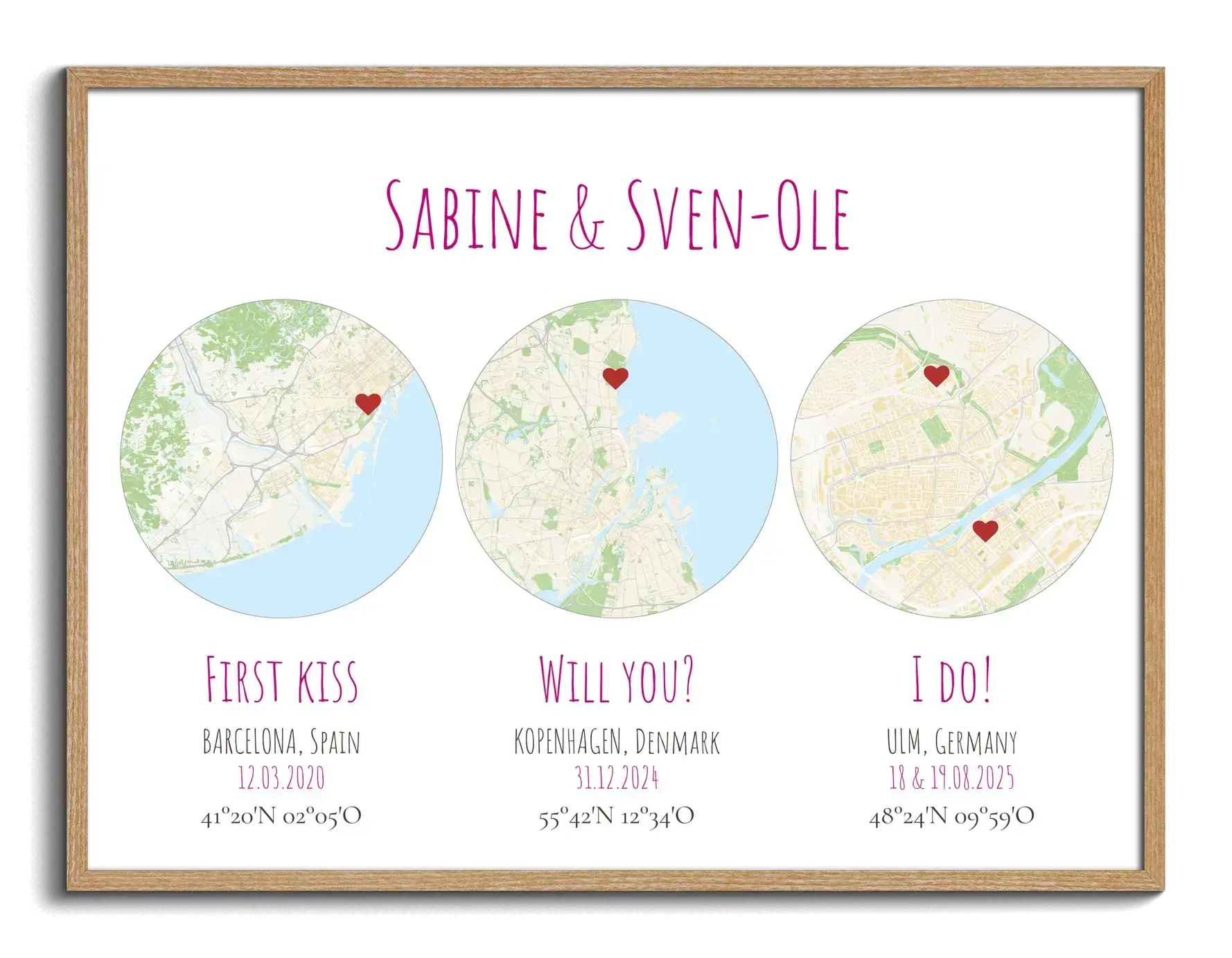Perfect als cadeau voor jullie mijlpalen: eerste ontmoeting, eerste kus, aanzoek en trouwdag. Ook mooi als persoonlijk wandbeeld voor een verjaardag, jubileum, housewarming, geboorte of als herinnering aan een reis en je favoriete plek.